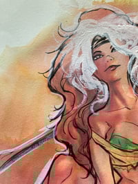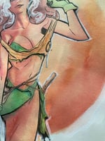An original painting of Marvel’s Southern powerhouse — Rogue. Rendered in watercolor and acrylic on cotton watercolor paper, this 11x14 inch piece captures her strength, beauty, and that untamed wild edge she always carries.